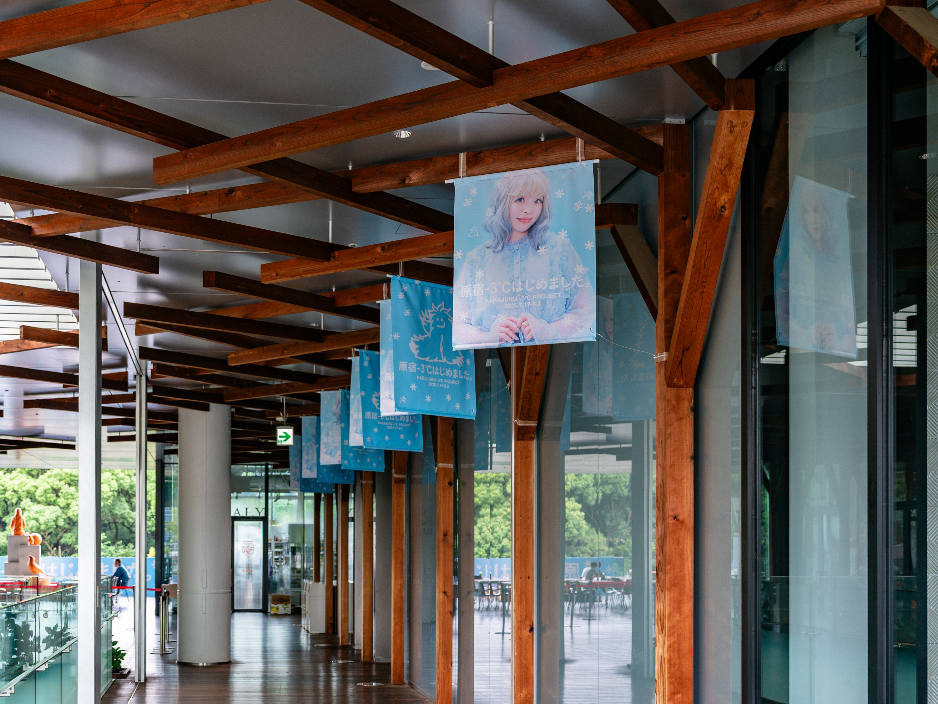 館内装飾を水色で統一。館内をB1Fスペース・ストリートでは畳ベンチ、館全体に冷やし商品を設置し、五感で「涼」を体感できる空間を演出しました。