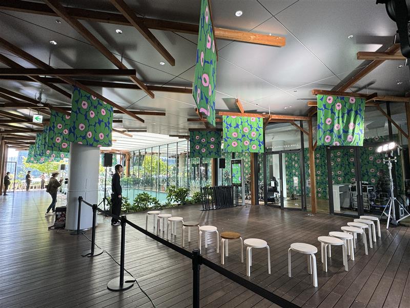 館内装飾を水色で統一。館内をB1Fスペース・ストリートでは畳ベンチ、館全体に冷やし商品を設置し、五感で「涼」を体感できる空間を演出しました。